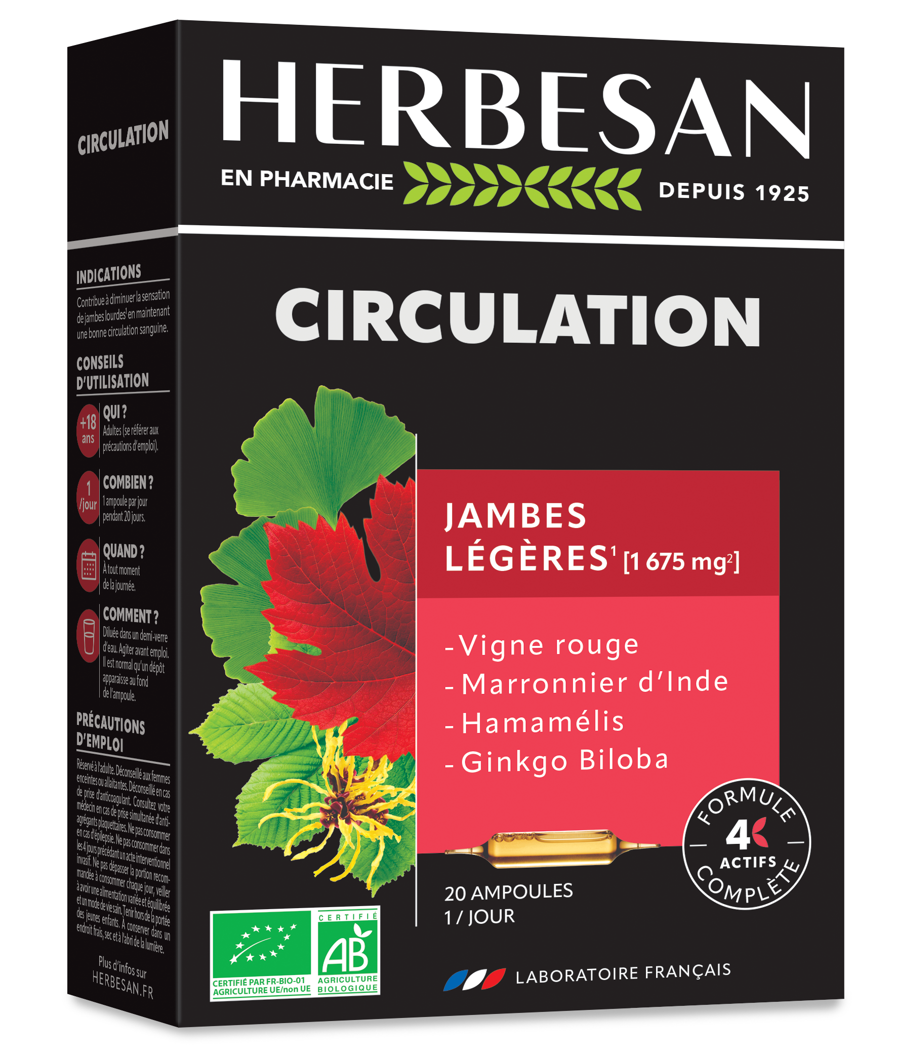 HERBESAN CIRCULATION est un phytocomplexe associant 4 plantes aux bienfaits reconnus.