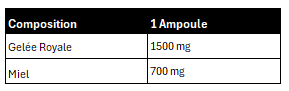 Déconseillé en cas d'asthme ou d'allergies, notamment aux produits de la ruche. Ne pas dépasser la portion recommandée à consommer chaque jour, veiller à avoir une alimentation variée et équilibrée et un mode de vie sain. Tenir hors de la portée des jeunes enfants. À conserver dans un endroit frais, sec et à l'abri de la lumière.